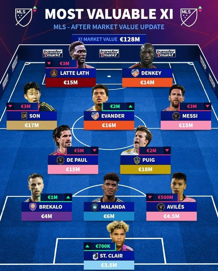 MLS身价榜:梅西跌300万、乌达1500万、孙兴慜1700万